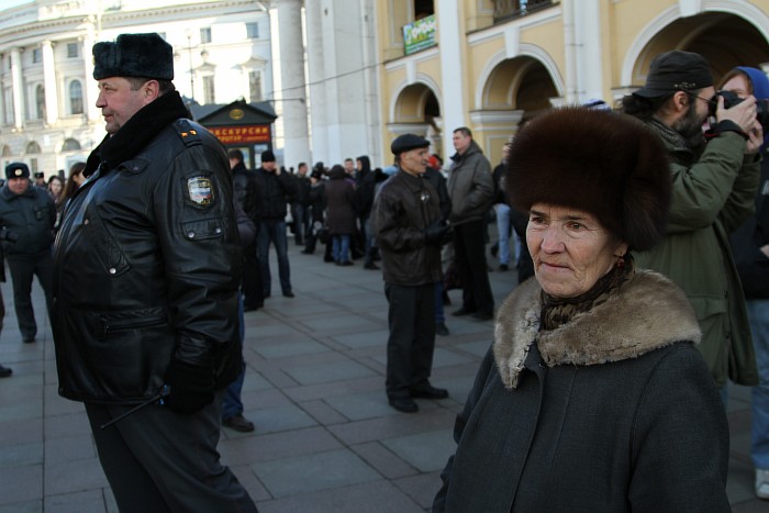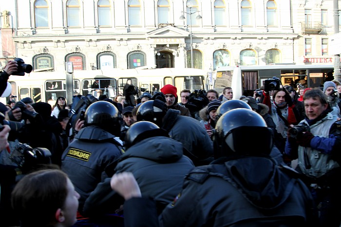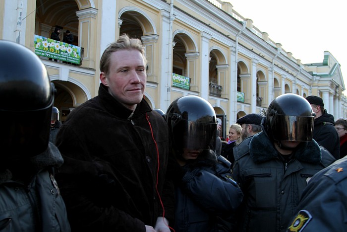 Сегодня у Гостиного двора состоялась оппозиционная акция уже подзабытой за месяцы массовых митингов «Стратегии-31», собравшая около сотни участников. Полиция задержала 18 человек, в числе которых — националист Николай Бондарик, экс-глава Объединенного гражданского фронта Ольга Курносова, лидер петербургского отделения «ПАРНАСА» Андрей Пивоваров, а также девушка, которая зажгла фаер и группа активистов «Другой России», попытавшихся развернуть палатку. Кто ещё был на несогласованном митинге? Смотрите фоторепортаж «Бумаги».