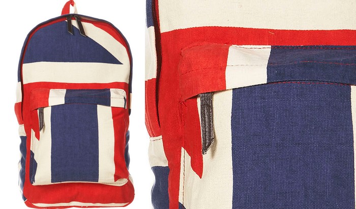 Такое количество британской символики в коллекциях масс-маркета связано, разумеется, с прошедшей Олимпиадой. Однако этот рюкзак можно трактовать как салют звёздно-полосатому флагу или отечественному триколору.
