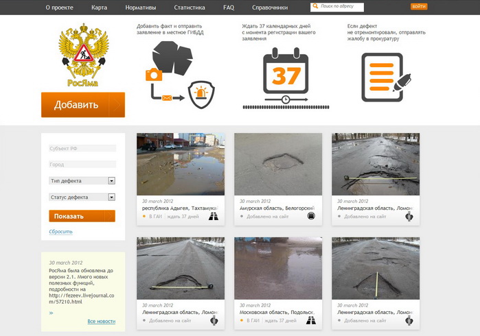 Конечно, многие из этих ресурсов не решают проблему, представляя пользователям только яркую картину того, в каких масштабах в России воруют, берут взятки и какой глубины должна быть яма, чтобы ее наконец засыпали. И, тем не менее, по данным сайта РосПил, общая сумма заказов, по которым юристы проекта пресекли нарушения, уже превысила 40 миллиардов. Возможно, благодаря подобным ресурсам и с дорогами ситуация улучшится, а там, глядишь, и дураки подтянутся.