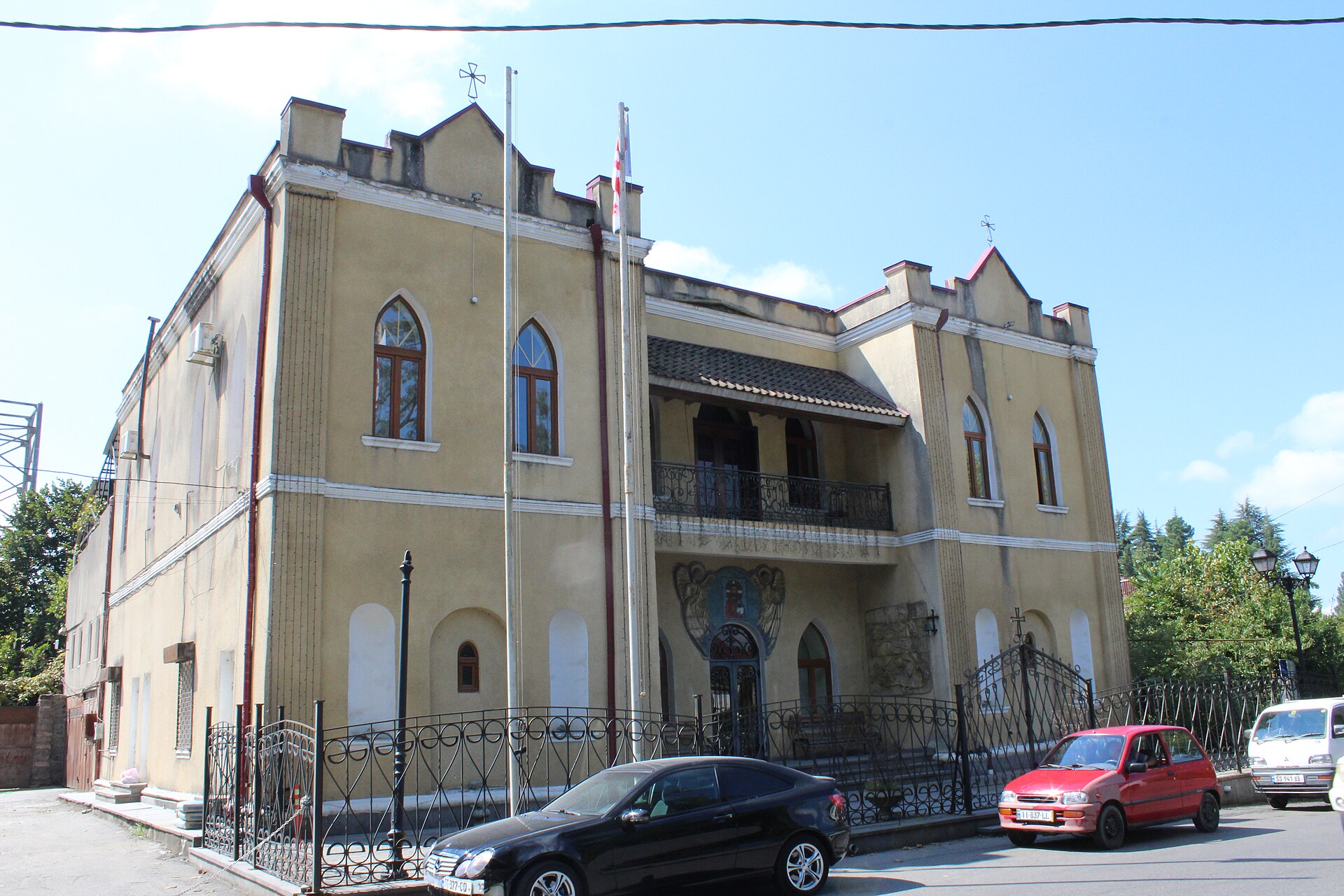 По улице Иоане Петрици прогуляйтесь до еще одного дворца князей Гуриели, на сей раз вполне неплохо сохранившегося. Его построил для себя Димитрий Гуриели в 1873 году в стиле особняков европейской знати с едва заметными грузинскими мотивами. Сейчас дворец служит резиденцией епископа Шемокмеди.
