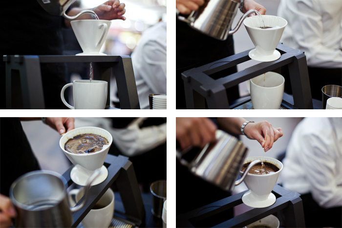 Кроме традиционных напитков на основе эспрессо, которые преимущественно готовятся в кофе-машинах, в Starbucks можно попробовать кофе, приготовленный в капельной кофеварке или необычным способом pour-over. Принцип приготовления тот же: кофе заливают кипятком и пропускают через фильтр. Но специалисты объясняют, что в последнем случае напиток насыщается кислородом и вкус проявляется ярче. Pour-over — это индивидуальный способ заварки, гость может выбрать любой из двенадцати сортов кофе. А вот если напиток готовится в кофе-машине, выбрать сорт кофе не получится.
