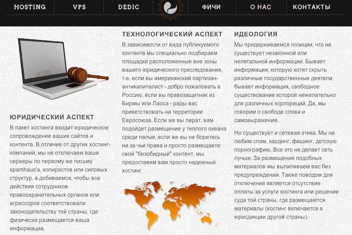 Отличие нового сервиса от других хостингов — созданный активистами «черный список» известных IP-адресов госорганов. «Мы БУДЕМ заморачиваться с письмами копирастов и прочих агрессоров и требовать от них соблюдения закона. Ситуация со свободой сети в России и мире начинает напрягать, уже на территории России незаконно заблокировано более 3000 сайтов, толку от этих блокировок нет и быть не может по определению. Поэтому, видимо, настало время громко сказать: чиновникам и государству в интернете не место!» — пишет в своем ЖЖ вице-председатель Пиратской партии Эдуард Шакиров.