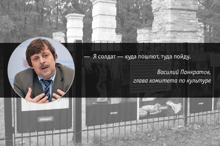 Кандидатура Василия Панкратова оказалась в списке возможных руководителей комитета по культуре после ухода Антона Губанкова. Но тогда председателем был назначен Дмитрий Месхиев. Однако в июле 2012 года ему пришлось покинуть пост из-за разразившегося скандала с растратой бюджета. С тех пор прошло десять месяцев. На должность прочили актрису Анастасию Мельникову и советника Кичеджи — Юлию Стрижак. 1 апреля губернатор Георгий Полтавченко официально назначил на пост председателя комитета Василия Панкратова. Что сделал? Пока ничего, но, узнав о возможном назначении после ухода Антона Губанкова, произнес обнадеживающее: «Я солдат — куда пошлют, туда пойду». А в первый рабочий день заявил, что комитет по культуре утратил доверие граждан и главная цель — наладить нормальную работу и приступить к осуществлению глобальных планов, которые пока не озвучиваются.