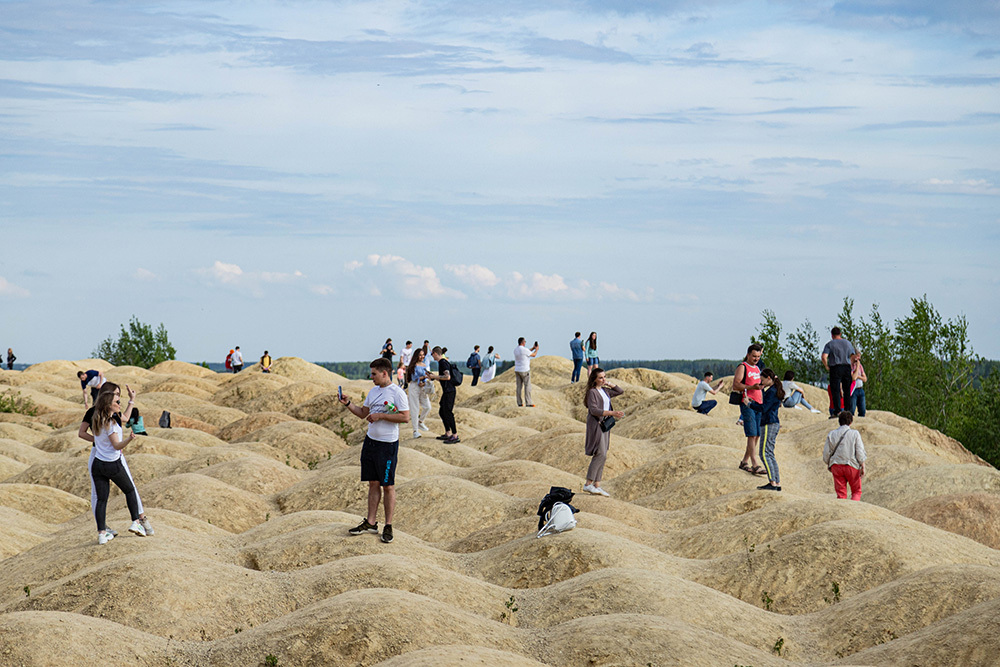 В Петербурге уже несколько дней стоит теплая погода — температура поднимается выше плюс 20 градусов. Многие горожане выезжают на отдых на природу, например, к Борницкому карьеру в 25 километрах от Гатчины. «Бумага» показывает, как выглядит место с «марсианскими пейзажами» в выходные.