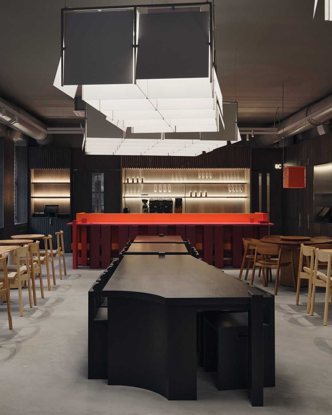 Интерьер нового Tsunami разработала студия Kidz, известная по дизайну Eggsellent на набережной Мойки и другим проектам. Дизайнеры создали пространство в духе японского минимализма с главным акцентом в виде розовой барной стойки.