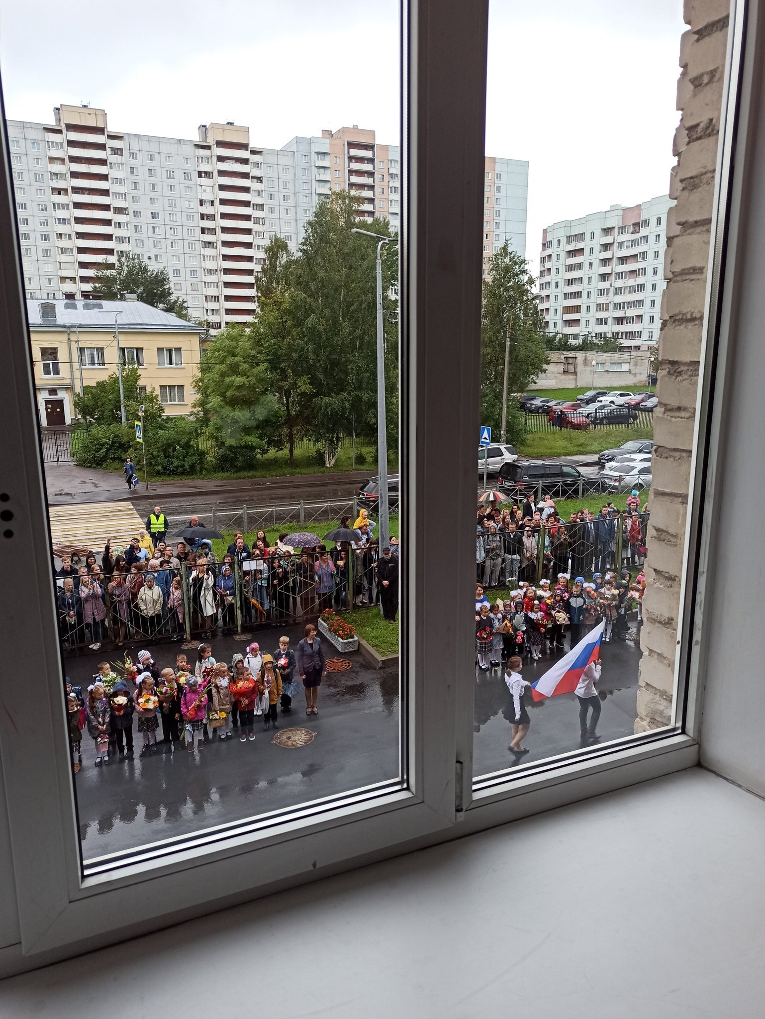 В одной из школ Красносельского района родители первоклассников наблюдали за линейкой из-за забора.