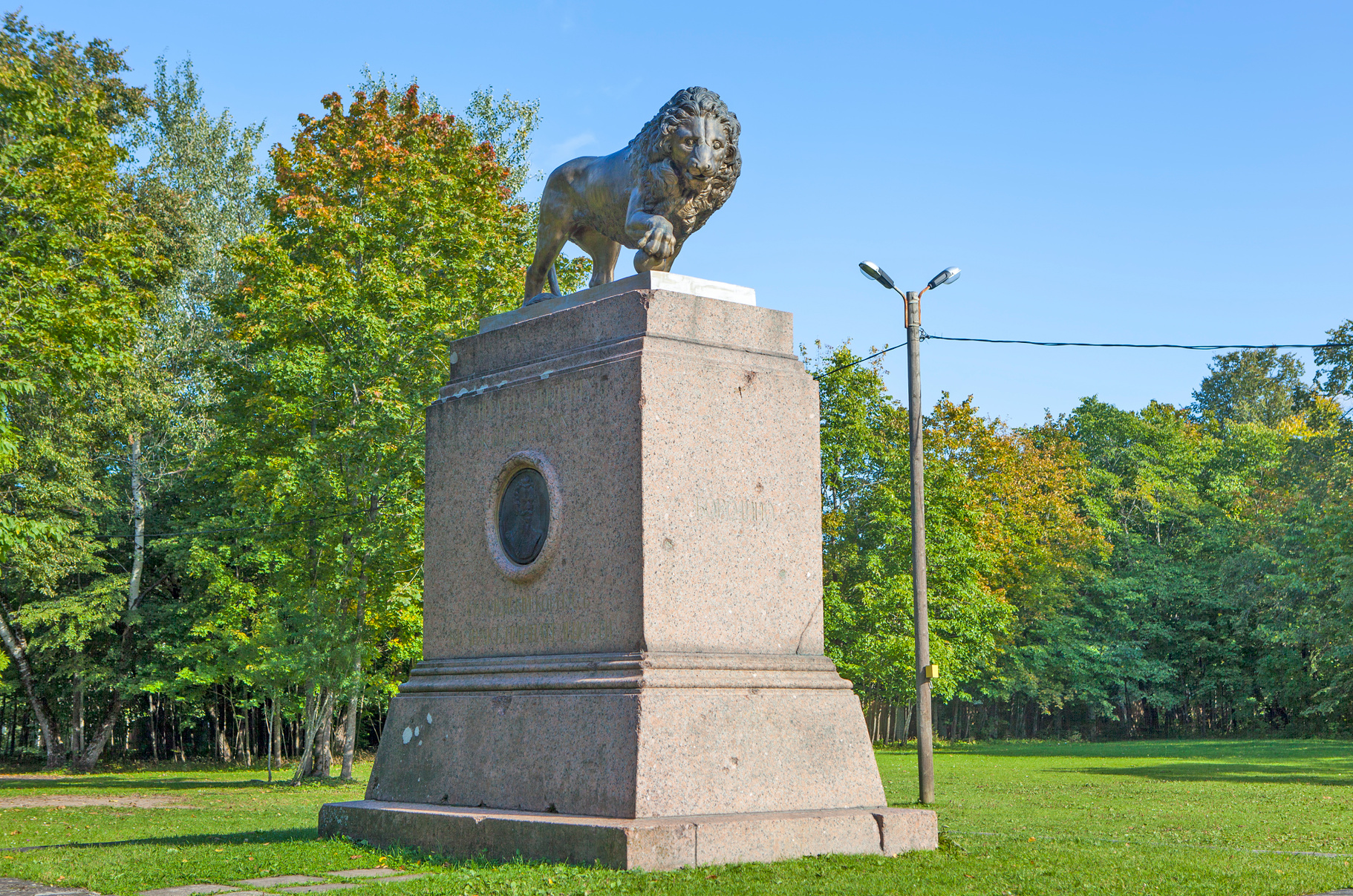 В пяти минутах ходьбы от пушки вглубь парка вы обнаружите скульптуру льва на гранитном пьедестале. Это памятник на могиле героя Наполеоновских войн, генерала Карла Бистрома (по прозвищу «генерал Быстрый»), поставленный за счет его сослуживцев по гвардейскому корпусу на территории генеральского имения Романовка. Сама усадьба не сохранилась, но на льва, изваянного по модели скульптора Петра Клодта, стоит обратить внимание.