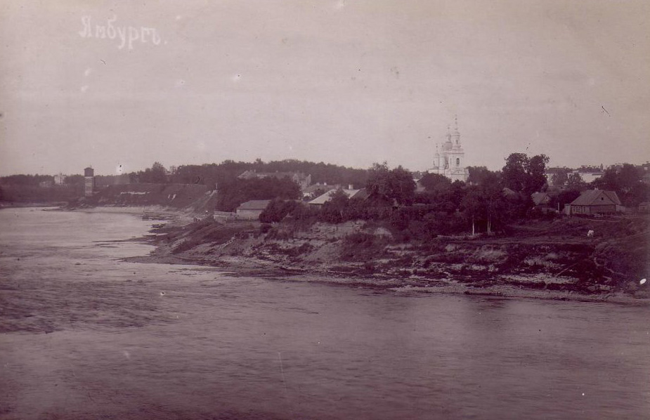 Вид на правый берег реки Луги в Ямбурге. Фото: PastVu