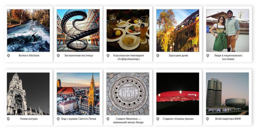 Почти в каждом немецком городе есть своя Мариенплац — сердце и душа города, где некогда был рынок, проводились турниры, отрезали руки карманниками и вешали преступников. В Мюнхене площадь примечательна тем, что там находится Старая ратуша, выглядящая как новая, и Новая, выглядящая как старая. Новая ратуша, построенная в 1908 году, является по совместительству самым красивым зданием города и поводом для шуток англичан: «У нас уже 50 лет как ездило метро, а вы только эту штуку построили». Рядом с площадью также расположена самая старая церковь, скульптура Джульетты и самая вкусная кондитерская города — Rischart.