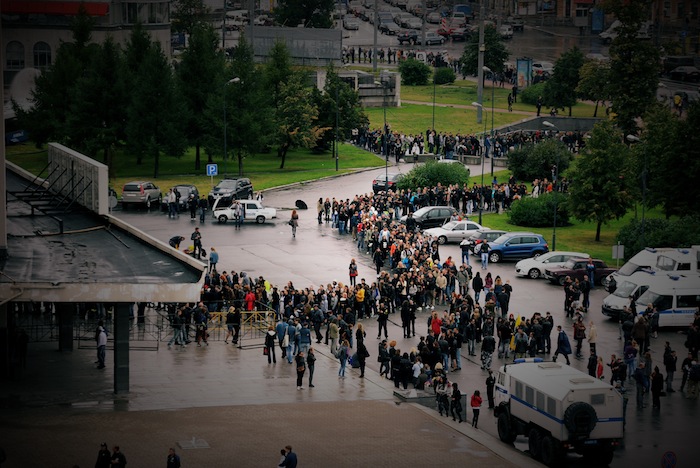 Фото дня: петербуржцы прощаются с Михаилом Горшеневым, одним из лидеров группы «Король и Шут», умершим в ночь с 18 на 19 июля. Очередь из нескольких тысяч человек выстроилась у ДС «Юбилейный» с самого утра. Гроб с телом музыканта вынесли под пятиминутную овацию; когда черный катафалк в окружении группы байкеров отправился в крематорий — прах Горшка развеют по ветру — фанаты исполнили песню «Прыгну со скалы».