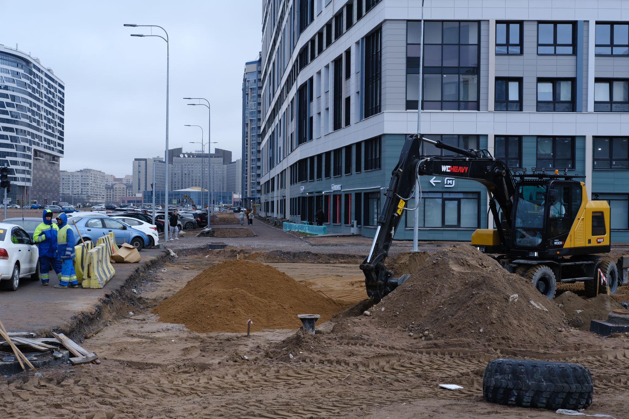 Власти Петербурга объявили о начале благоустройства сквера на углу Новосмоленской набережной и улицы Кораблестроителей, 23. На территории рядом с рекой Смоленкой уже ведут земляные работы.