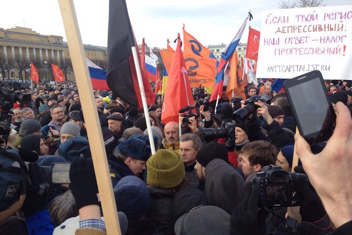 Почему полицейские приняли анархистов за «Правый сектор» и как люди не дали их задержать, кто пришел на марш в память Бориса Немцова и что о нем говорили на митинге — в репортаже и видео с протестных акций в Петербурге.