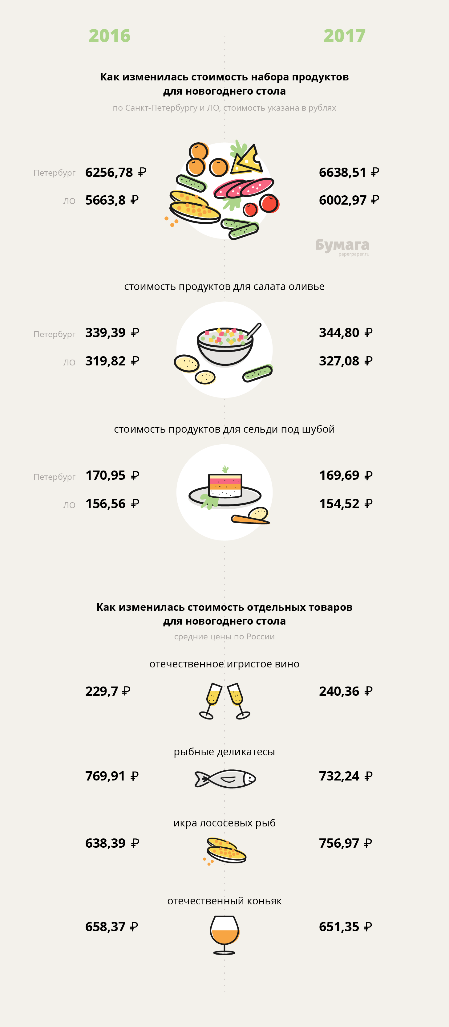 Во сколько петербуржцам обойдется новогодний стол в 2017 году и как изменились цены игристого вина и оливье — в одной иллюстрации