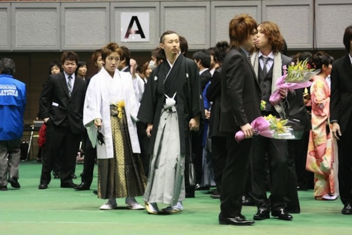 Далее у 20-летних шло посещение храма и под конец дня — бурное празднование с официально разрешенным алкоголем — идзакаи (японские пабы), караоке и рестораны забиты под завязку. С этого дня им разрешается курить, поэтому на выходе со стадиона мы увидели с десяток компаний совершеннолетних, которые смолили совсем не как новички, зато с новой «взрослой» раскованностью.