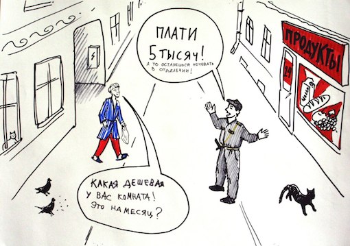 Вчера в Петербурге прошел очередной этап социального проекта художницы Ольги Житлиной «Конкурс анекдотов Ходжи Насреддина»: при участии современных художников мигранты создают юмористические рисунки и плакаты. Цель проекта — привлечь внимание горожан к проблемам трудовых мигрантов в России. Конкурс назван в честь фольклорного персонажа азиатских историй и шуток Ходжа Насреддина, который путешествует по миру на ослике и всегда выбирается из сложных ситуаций благодаря своей смекалке и находчивости. По сюжету проекта, Ходжа Насреддин оказался на заработках в России. Встречи проходят в кафе и чайхонах города. На последней было около 20 человек.