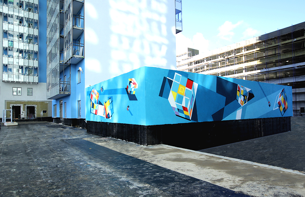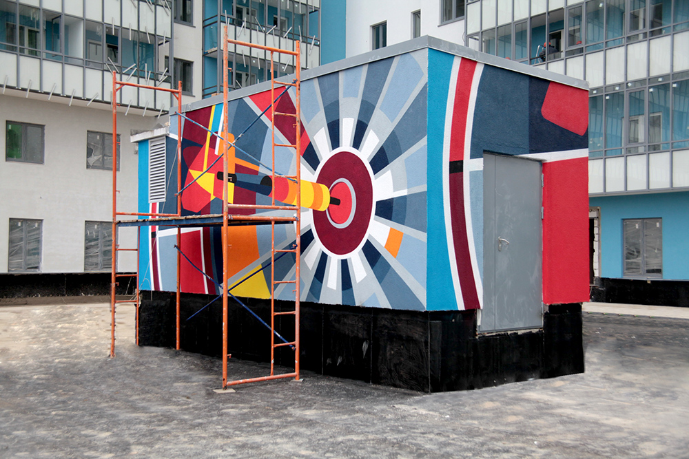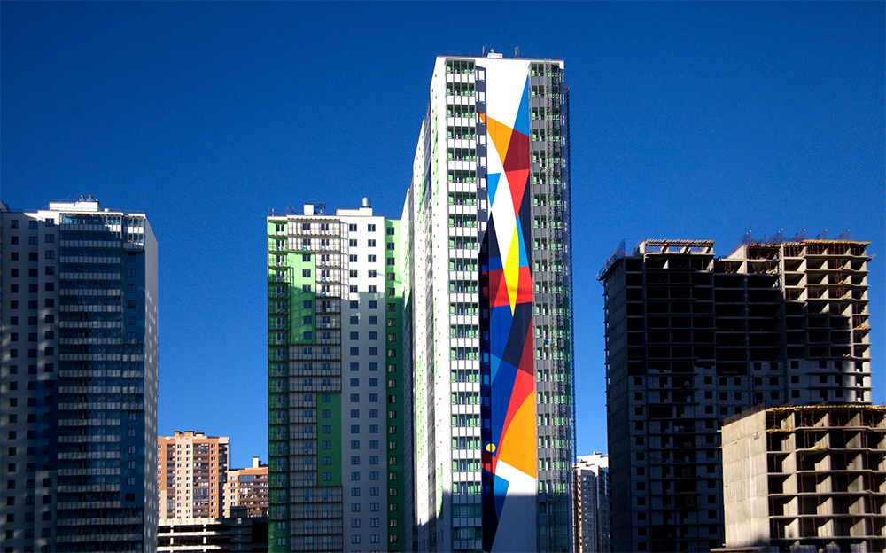 Уличную абстрактную графику нанесли на пять домов. Четыре работы выполнили на выходах из подземного паркинга во дворе жилого комплекса. Пятая работа побила рекорд по высоте среди всех настенных росписей в России: масштабную композицию площадью 510 кв. метров нанесли на боковой фасад 24-этажного дома, ее высота составила 75 метров.