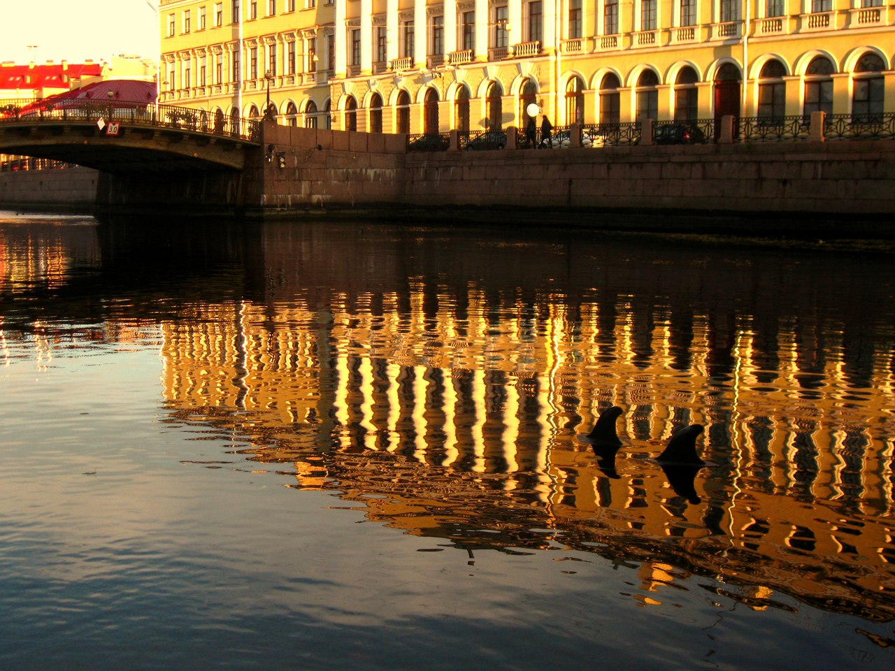 Петербургский художник Денис Тоф провел новую акцию в центре города: в районе Марсова поля он запустил по каналу Грибоедова два макета дельфиньих плавников в натуральную величину. До этого Тоф провел аналогичную акцию в Москве, «выпустив» трех акул.