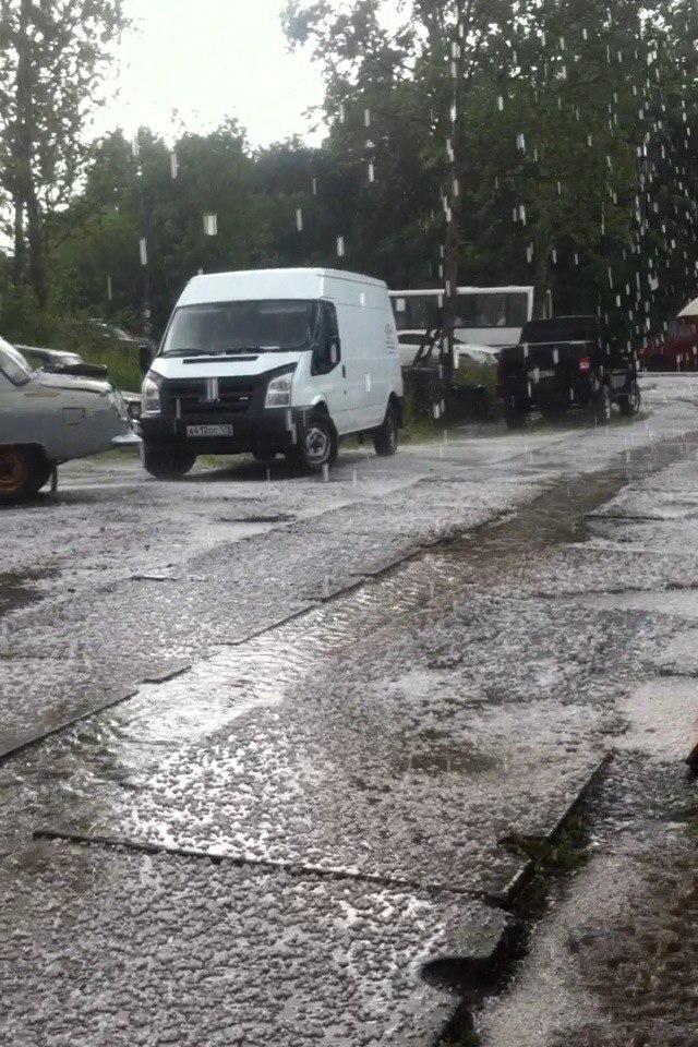 По данным очевидцев, в Рыбацком и Купчине сегодня уже прошел ливень с градом.