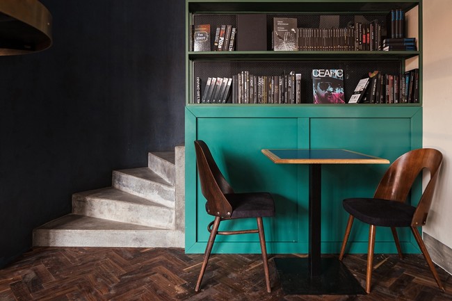 Интерьер заведения разработала дизайн-студия Kapodaki, работавшая над проектами Bekitzer, Social Club и Soul Kitchen Hostel. Он выполнен в классическом британском стиле и отсылает к магазину главного героя сериала «Книжный магазин Блэка».