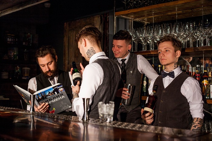В меню — более 30 видов вина стоимостью от 210 рублей за бокал, наборы шотов на основе рома, водки или бехеровки, а также закуски. Бар работает каждый день c 18:00 до 1:00.