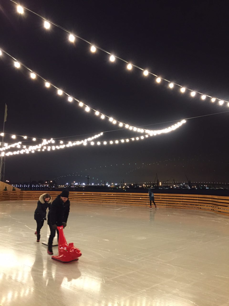 В «Севкабель Порту» тестируют каток в тысячу квадратных метров у воды. Посмотрите, как уютно он выглядит