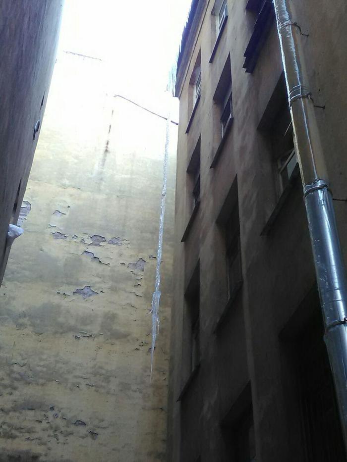 Пользователь сайта «Пикабу» под ником pinguinalone опубликовал фотографию сосульки высотой в три этажа дома. По его словам, снимок был сделан в одном из дворов Петербурга.