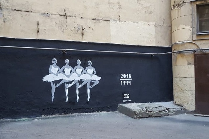 В Петербурге закрасили граффити с «Лебединым озером», посвященное инаугурации Путина. Оно просуществовало один день