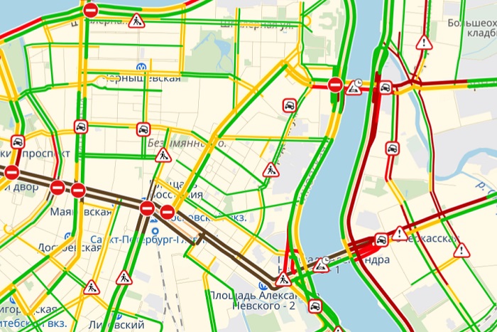 Судя по «Яндекс.Картам», закрыт также мост Александра Невского в сторону Невского проспекта. Об этом в КРТИ не предупреждали.