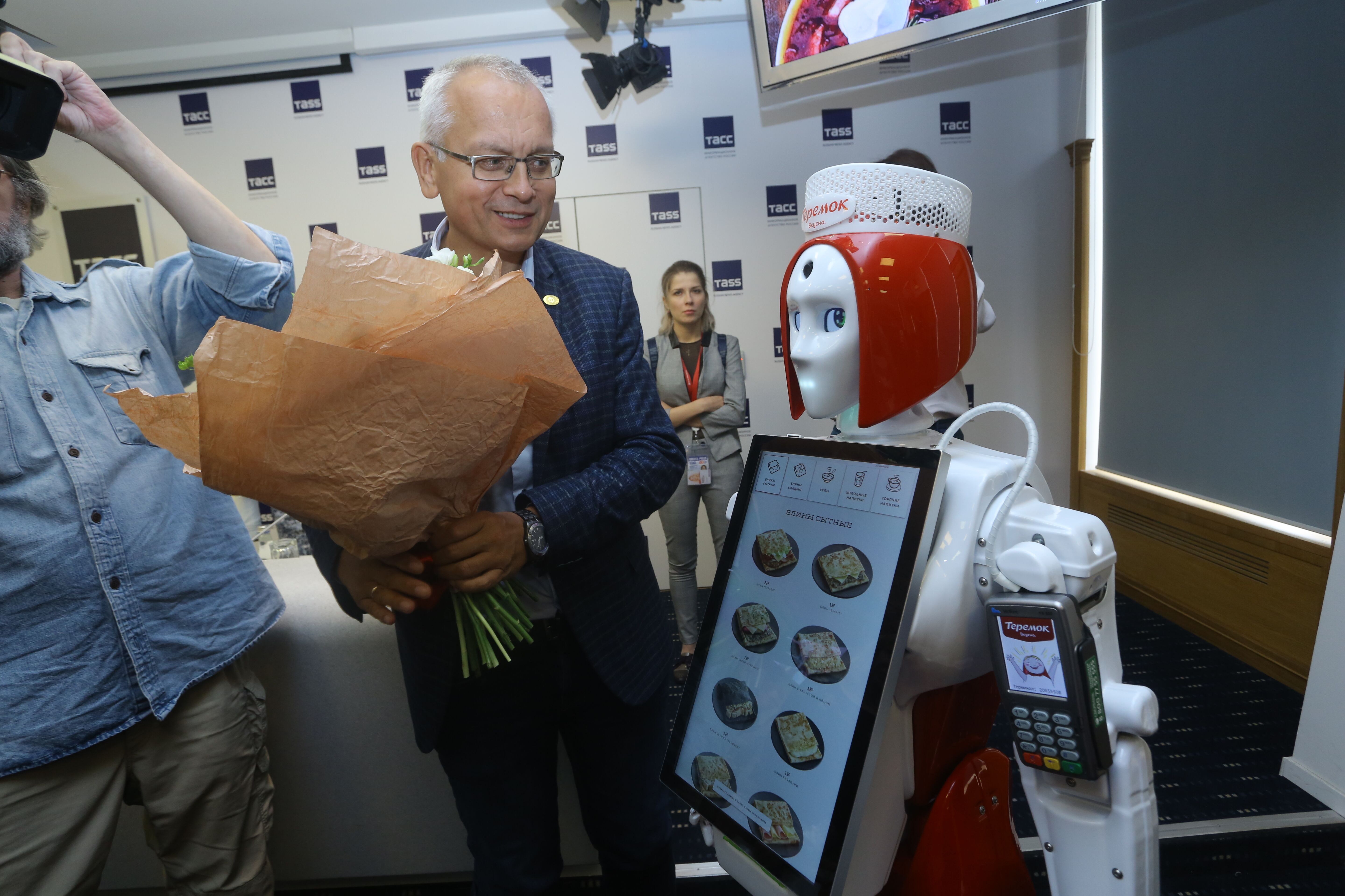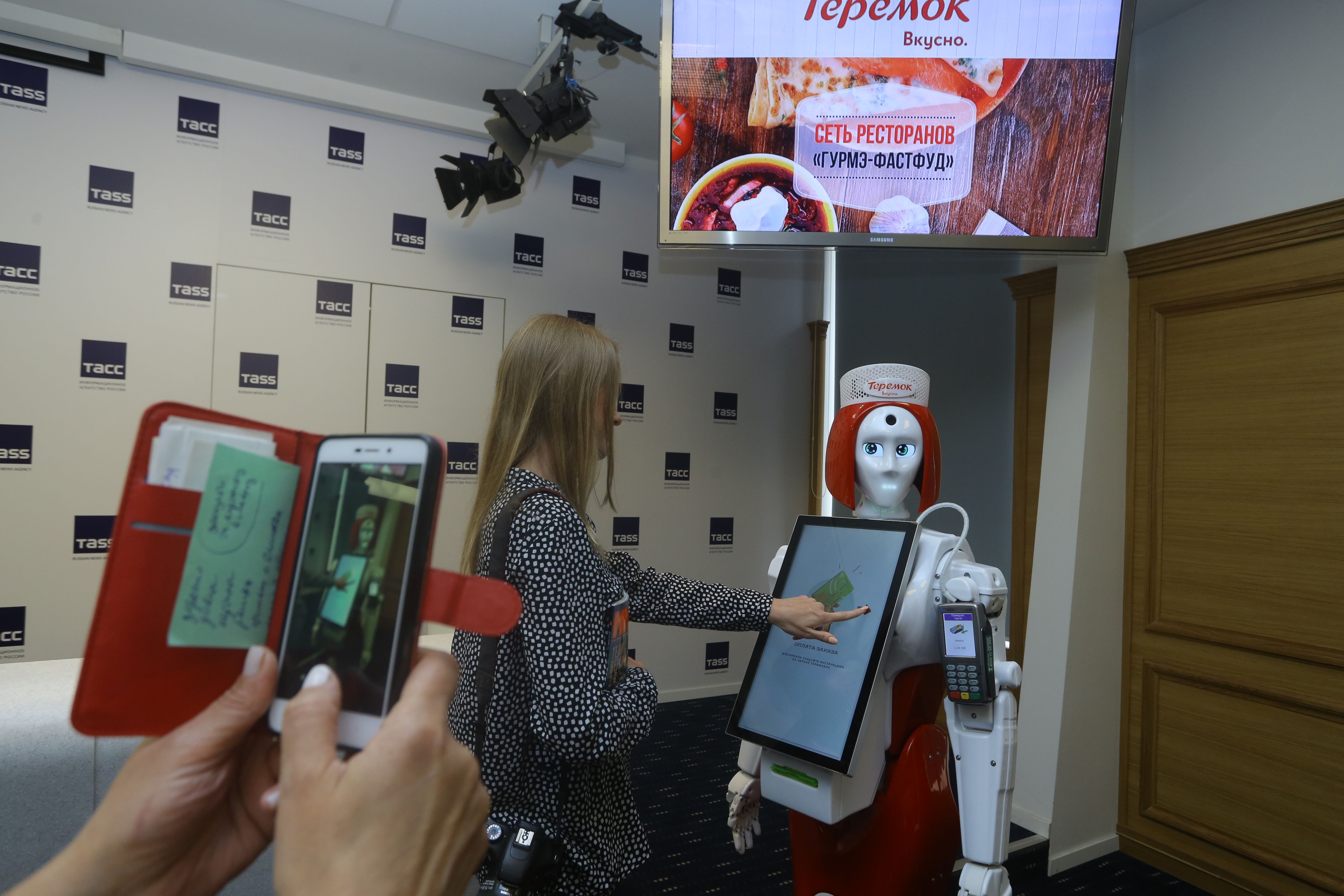 В ресторане «Теремок» в ТК «Невский Центр» работает робот-кассир Маруся. Она предлагает блюда, оформляет заказы, принимает оплату и общается с гостями.