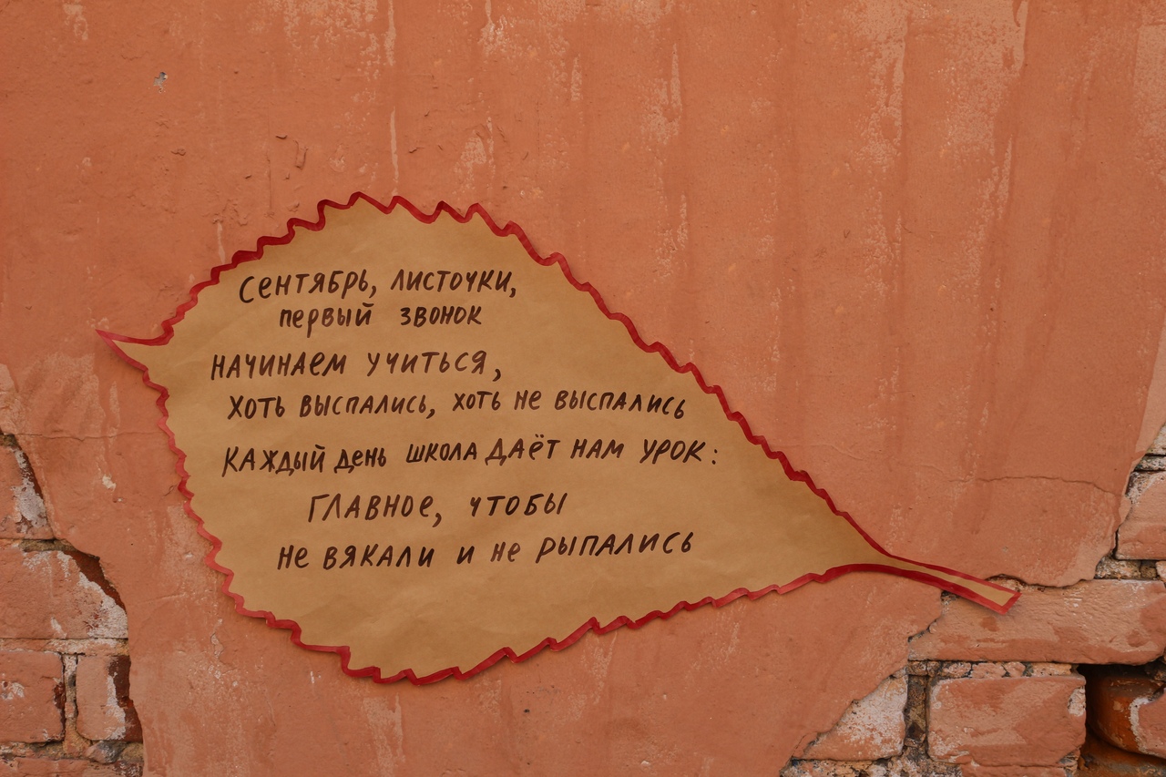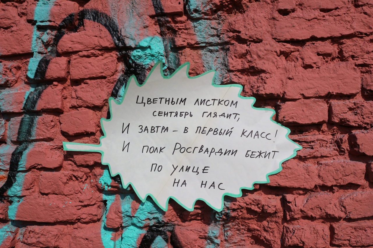 К 1 сентября активисты из группы «УРодины» развесили на стенах зданий в Петербурге, в том числе на школах, стихи о проблемах современных учеников и российского образования. В них говорят о митингах, коррупции и сексизме.