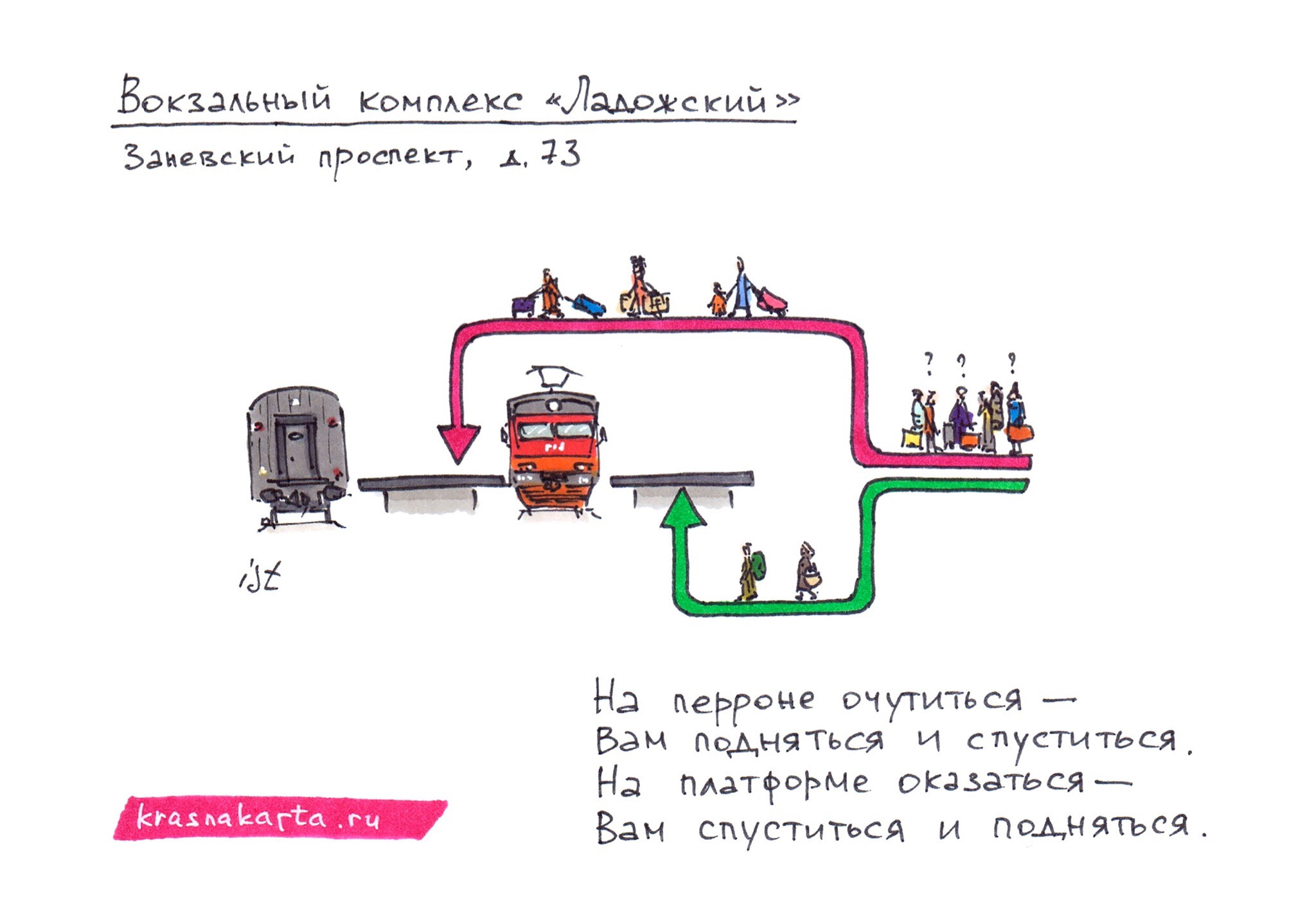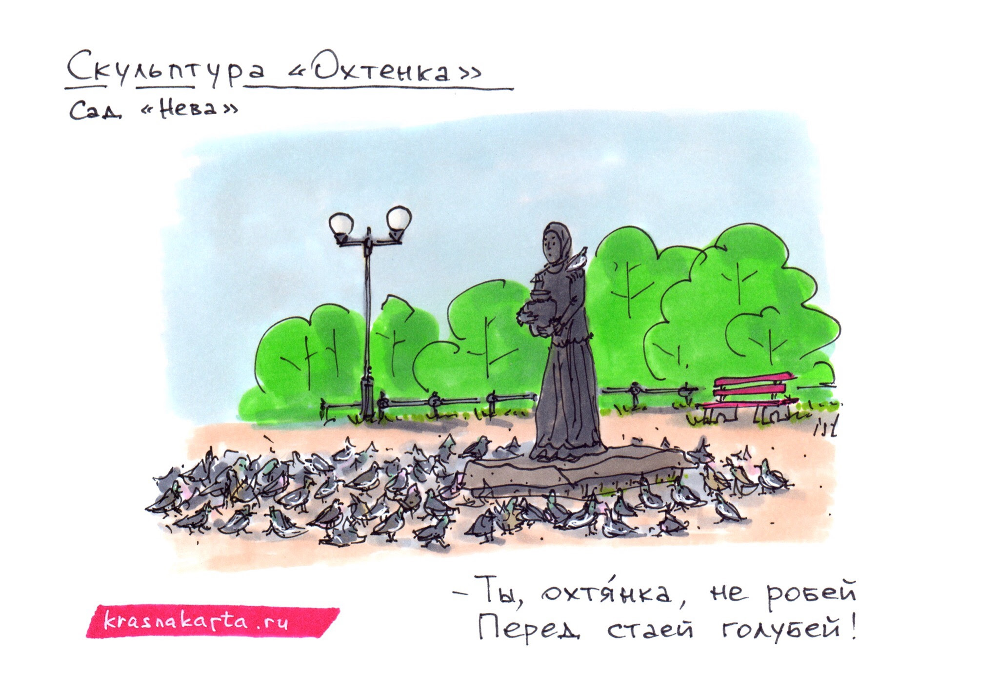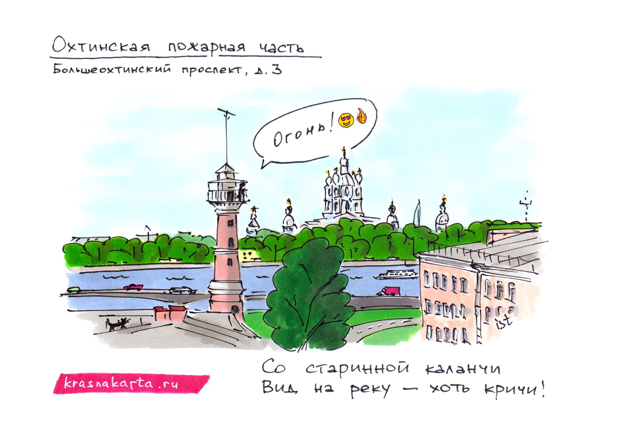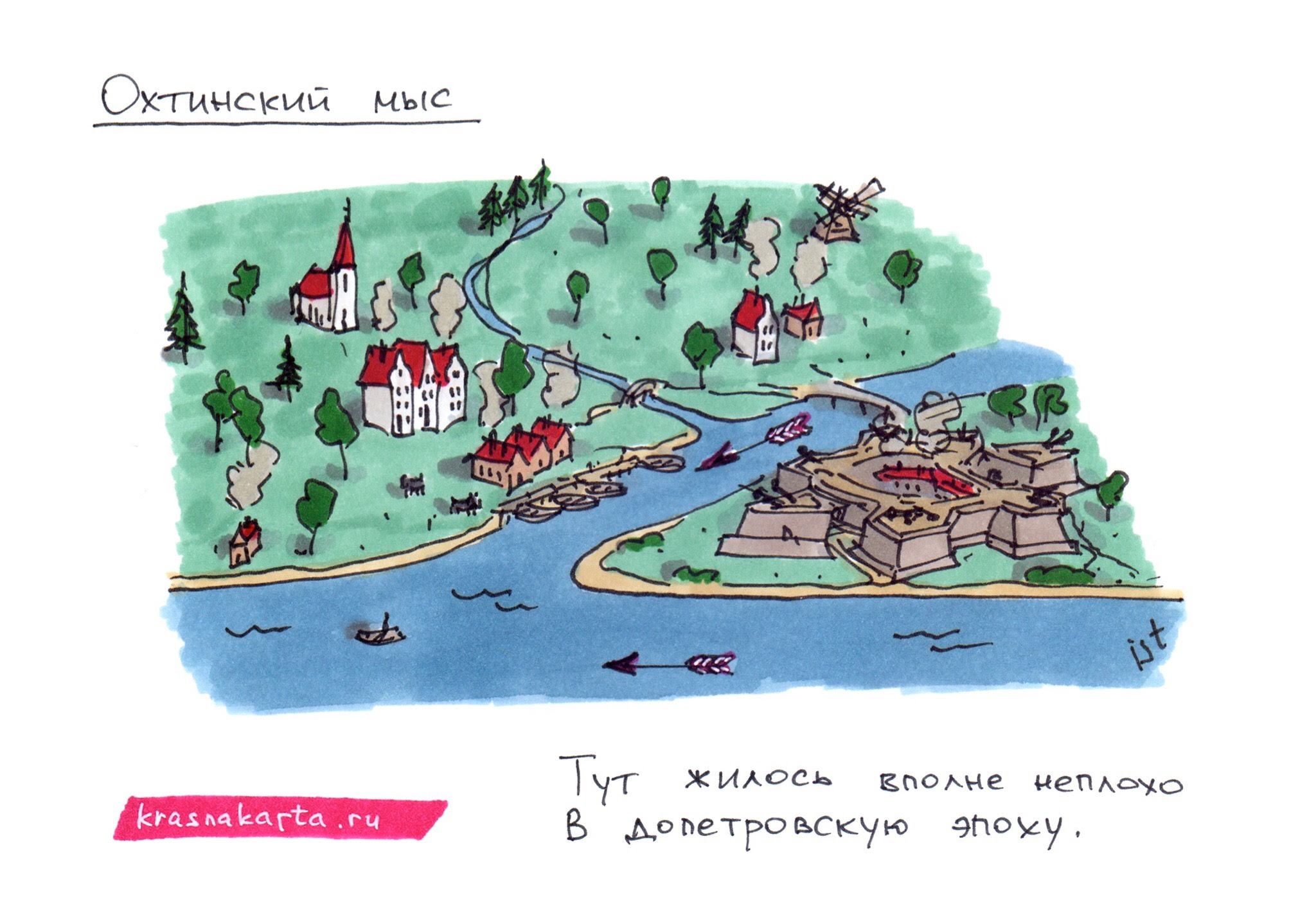 Иллюстратор подготовил рисунки для проекта с маршрутами для прогулок Krasnakarta. На них изображены известные места района — Охтинский мыс, Музей стрит-арта, Уткина дача и Ладожский вокзал.