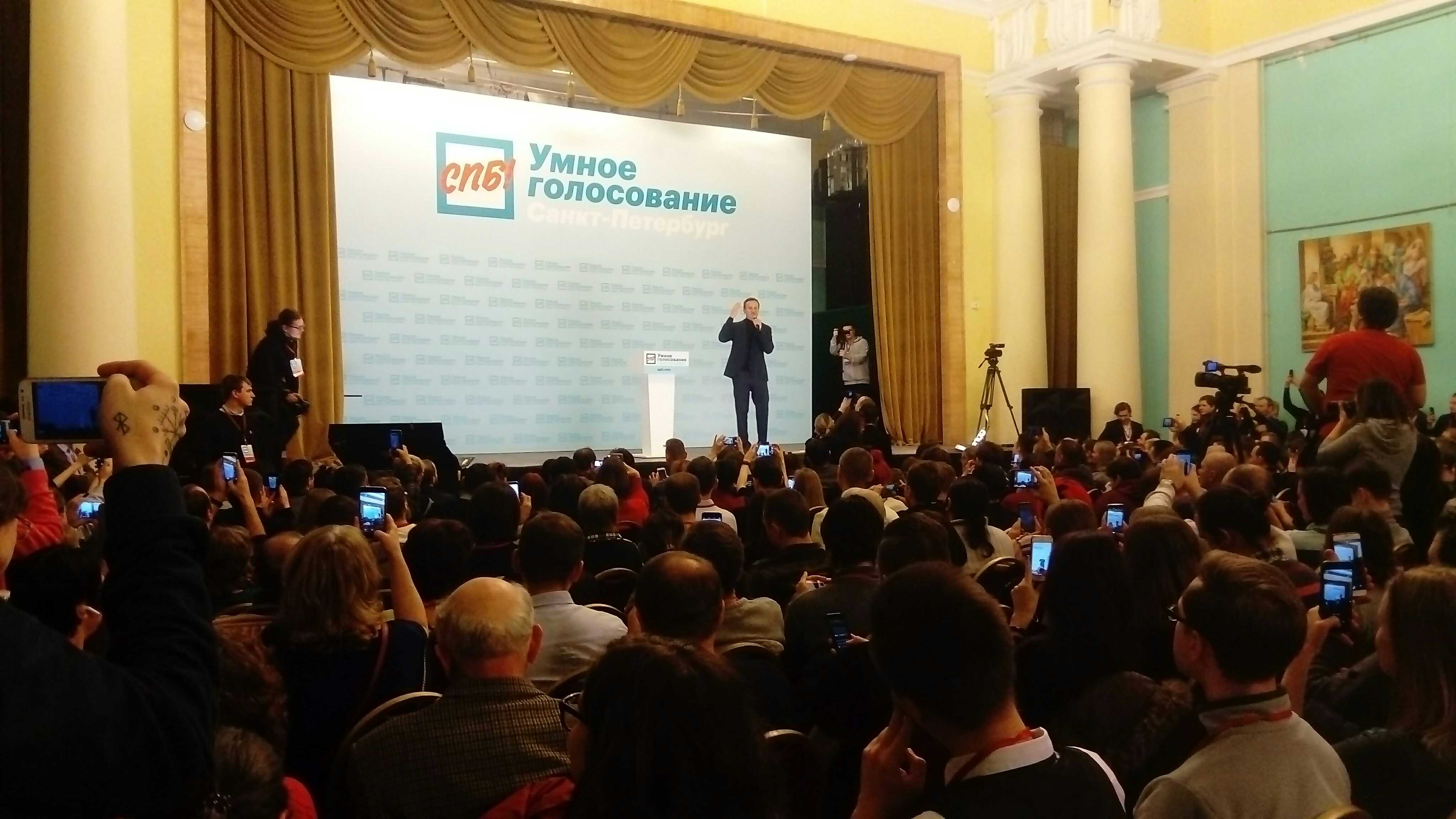 В Петербурге прошла встреча с Навальным, посвященная муниципальным выборам. На нее пришли более 500 человек