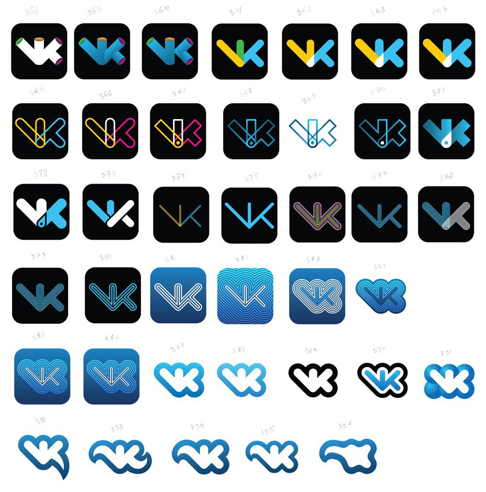 Дизайнер Артемий Лебедев опубликовал варианты логотипов соцсети «ВКонтакте», которые не утвердило руководство компании. По его словам, в 2011 году «Студия Лебедева» предложила 403 варианта, в итоге использовали 404-й.