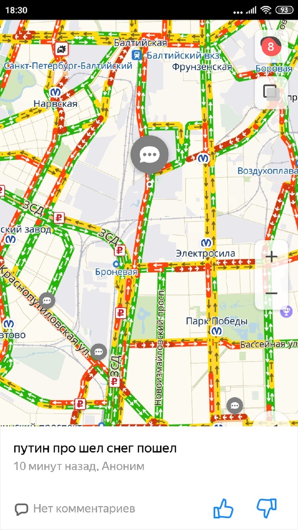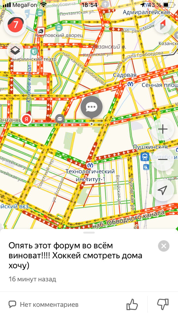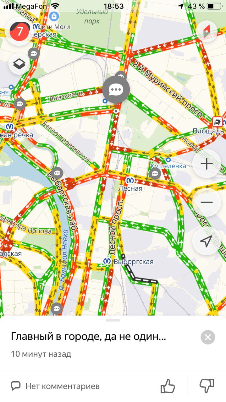 К вечеру 9 апреля на петербургских дорогах образовались пробки в семь баллов, согласно данным сервиса «Яндекс.Пробки».