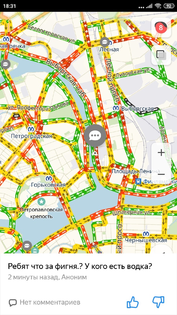 Водители стоят в пробках в основном в центре города, в том числе на Садовой улице, Обводном канале, улице Академика Лебедева и Невском проспекте. Некоторые дороги нагружены на Васильевском острове и Петроградской стороне.