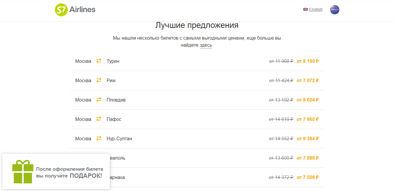 Во вторник, 21 января, авиакомпания S7 запустила распродажу билетов на направления по России и Европе со скидками до 60 %. Об этом говорится на сайте компании.