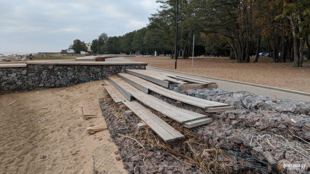 Пляж в Лисьем Носу, частично разрушенный во время шторма в феврале, до сих пор полностью не восстановили. На его создание потратили 56 млн рублей