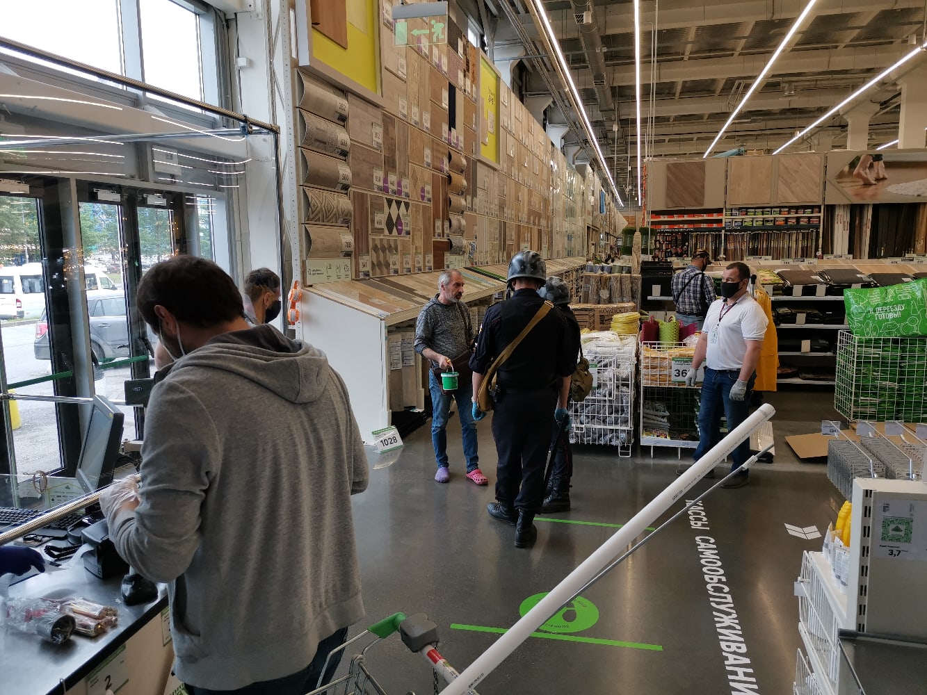 В магазин «Леруа Мерлен» на Васильевском острове днем 10 июня вызвали Росгвардию из-за покупателя, нарушавшего масочный режим. Очевидцы рассказали об этом в соцсетях и опубликовали фотографии.
