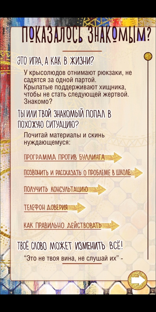 Фонд социального развития «Полдень» и эксперты программы «Травли NET» создали мобильное приложение, которое рассказывает о буллинге в школе. В игре «Анимагия» можно быть в роли жертвы, агрессора или свидетеля.