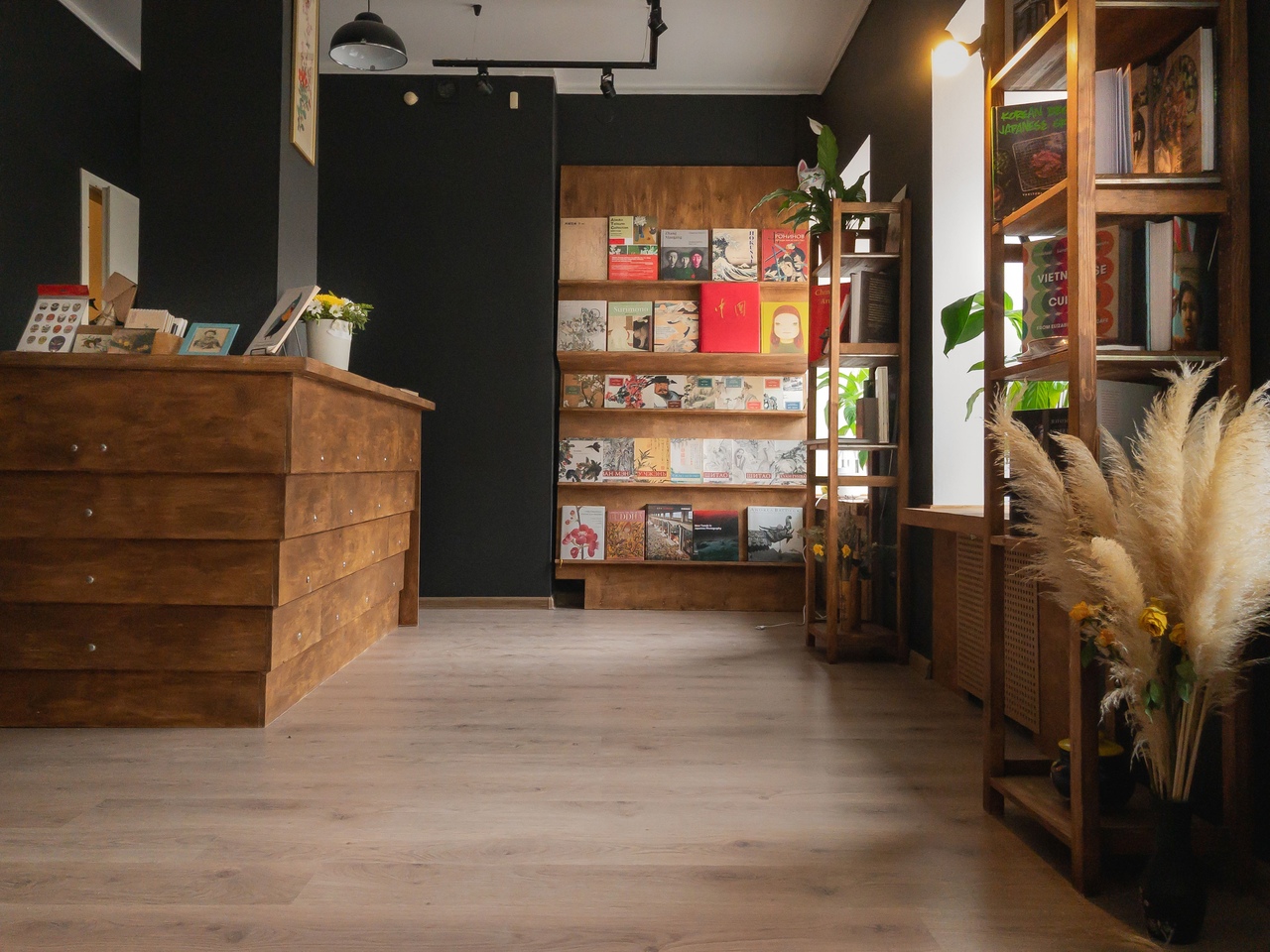Ранее в этом помещении была парикмахерская. Сотрудники магазина вместе с друзьями и подрядчиками обустроили там книжные полки, стойку, напоминающую перевернутую пагоду, неоновые вывески. К тому же у магазина обновился логотип.