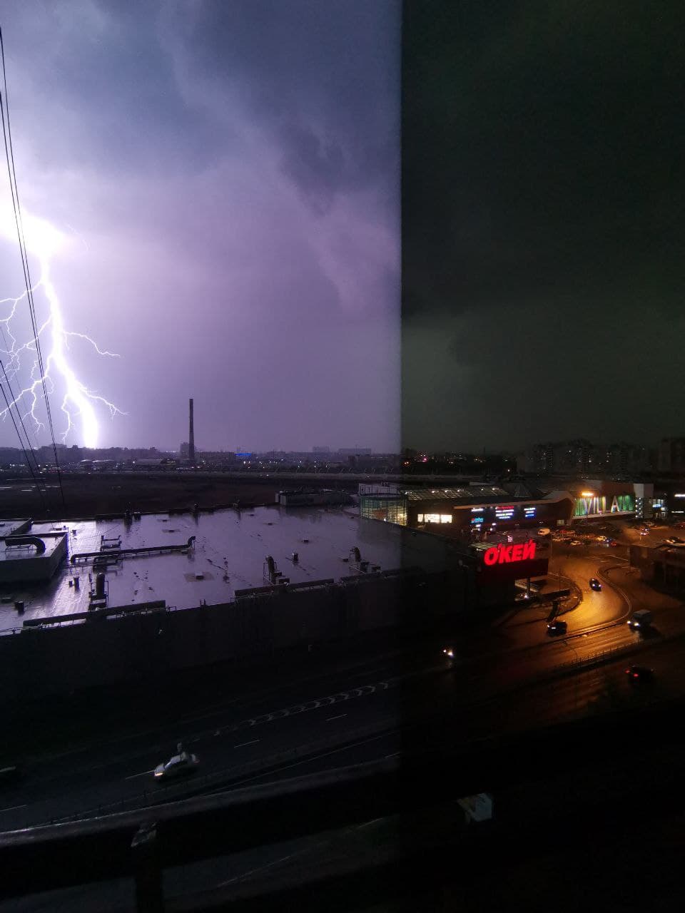 Петербург накрыло ливнями и грозой. Посмотрите, как молния озаряла почерневшее небо ⚡