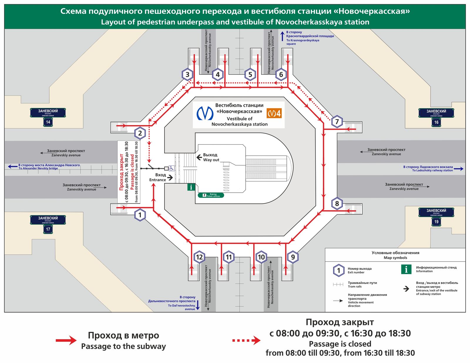 27 февраля в петербургском метрополитене пассажиров предупредили об изменении схемы прохода в подуличном переходе «Новочеркасской» из-за скорого закрытия «Ладожской» на ремонт.