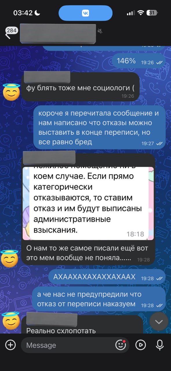 Практика на соцфаке. Авторка треда поступила на соцфак СПбГУ в 2020 году. На втором курсе в качестве практики студентов обязали работать на переписи. Участок назначали случайно, девушке достался квартал новостроек у «Балтийской Жемчужины». Локдаун. Несмотря на перенос переписи на год из-за ковида, работа пришлась на очередной локдаун. Это осложнило работу: из-за вируса люди боялись общаться с переписчиками. По наблюдениям девушки, на звонок в дверь реагировала четверть, часть из них отказывалась разговаривать «из-за заразы» или потому что думали, что она мошенница. «По сути я добилась ответа от половины реальных жильцов после обхода участка дважды».