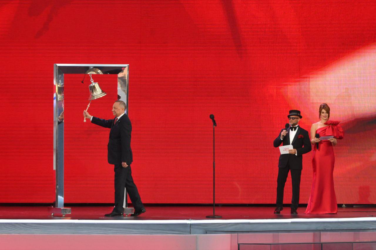 Концерт начался после того, как Беглов ударил в рынду. Первый исполнитель на сцене — группа «5УТРА».