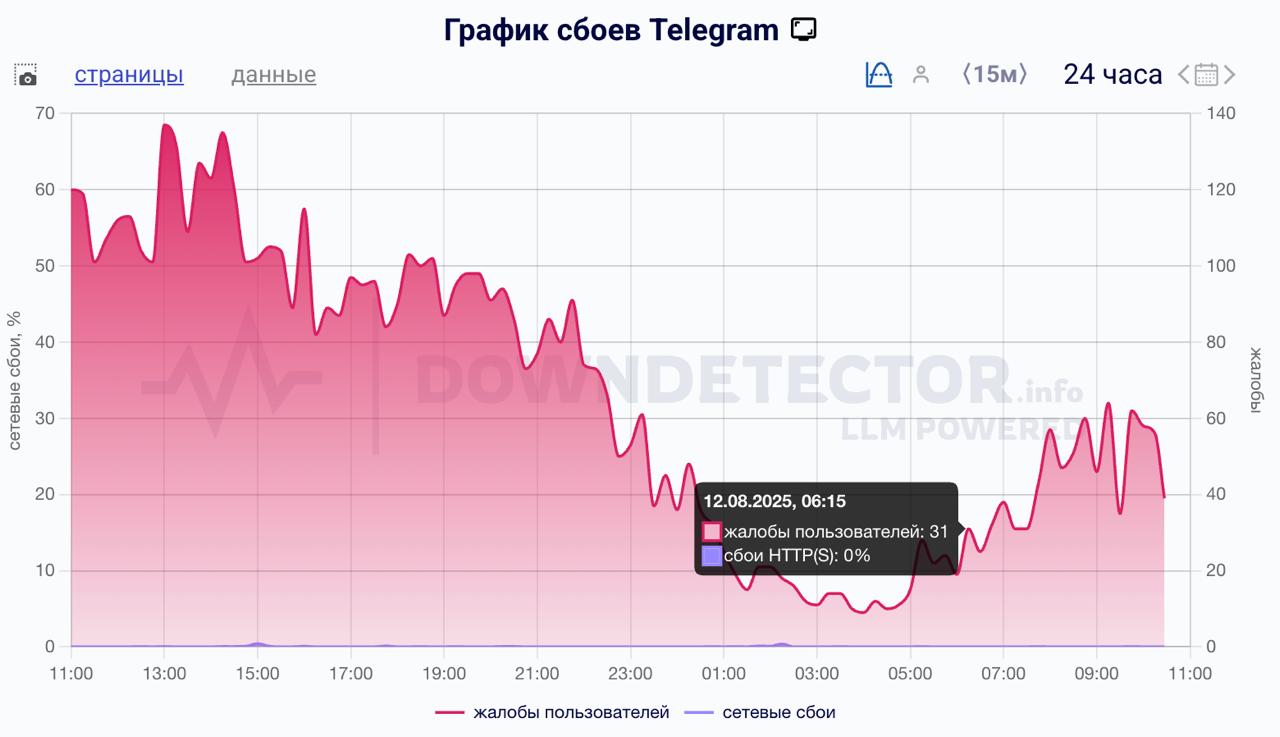 Вчера пользователи Telegram и WhatsApp жаловались на проблемы со звонками в мессенджерах. Судя по данным сервиса Downdetector, количество жалоб на сбои WhatsApp и Telegram стало резко расти около 8:00 утра. В основном они касаются звонков и видеозвонков. Всего за сутки сервис зафиксировал более 13 тысяч жалоб.
