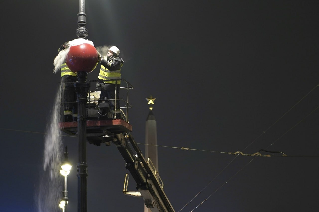 За демонтажом новогодних декораций на Невском проспекте наблюдал корреспондент «Бумаги».