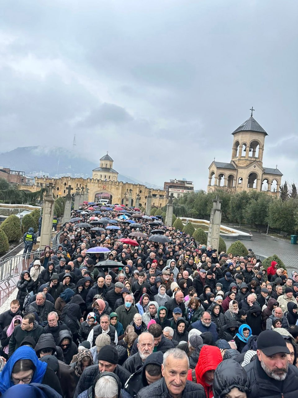 На фото: очередь во дворе собора Святой Троицы из желающих проститься с патриархом, Keti Khukhua / Facebook 🔗