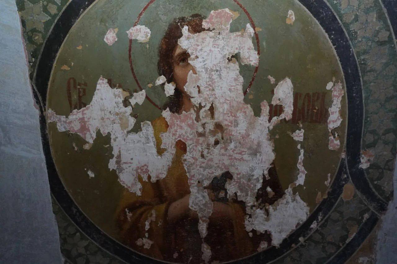 Детали. Живопись находится под масляными красками, шпаклевкой, местами — под штукатуркой и цементом. Ее собираются открыть и законсервировать. В помещениях, где нашли живопись, устроят актовый зал.