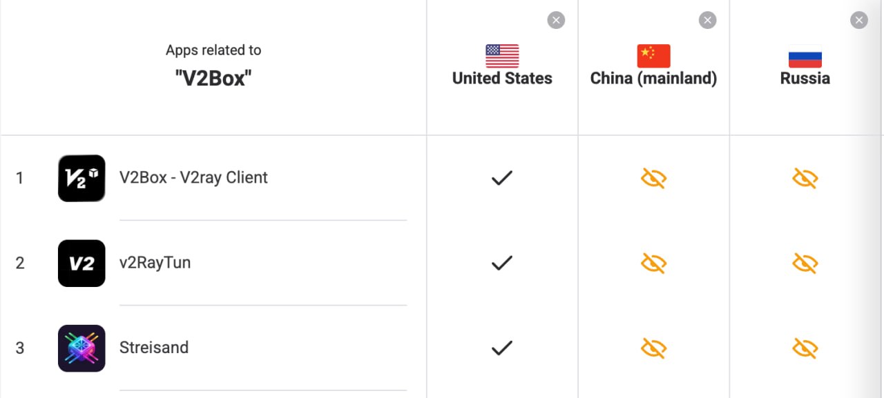 Из App Store удалили приложения Streisand, V2Box и v2RayTun, обратило внимание издание «Код Дурова».