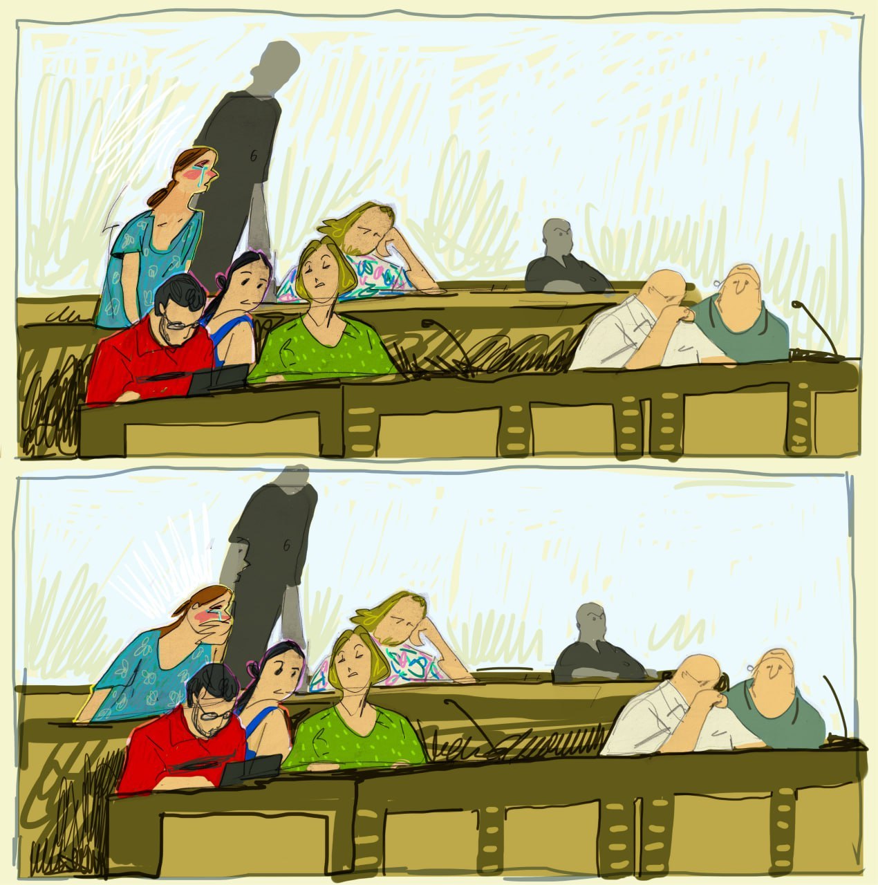 Иллюстрация: суд над Анастасией Зиновкиной и Артемом Грибулем / Courtroom Artists Tbilisi